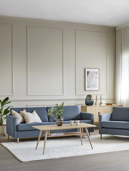 - Velg mellom tre armlener og to forskjellige ben i hvitoljet eller wenge (mørk brun).